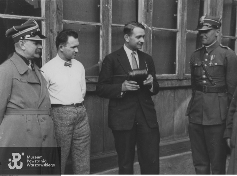 Standing from the left side: Colonel Pluciński, an unidentified person, engineer Michal Gonczaruk, Captain Stefan Witkowski. Photo from 1931 taken by Leon Jarumski/ from the archives of the National Digital Archives NAC