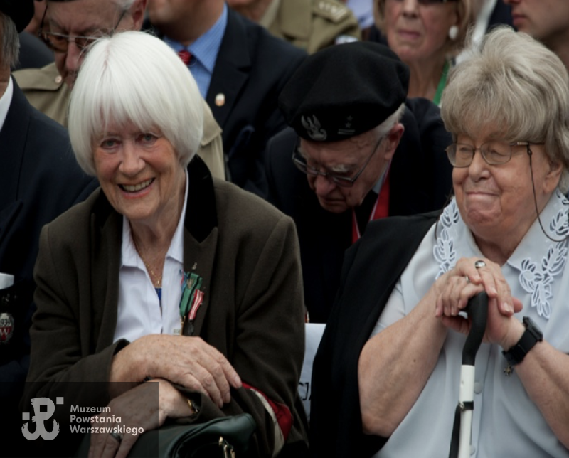 Od prawej mjr Maria Stypułkowska-Chojecka „Kama” z Aliną Janowską „Aliną”, podczas uroczystości spotkania Powstańców z Prezydentem RP w Muzeum Powstania Warszawskiego, 31 lipca 2010, fot. Zbigniew Furman, Zbiory MPW