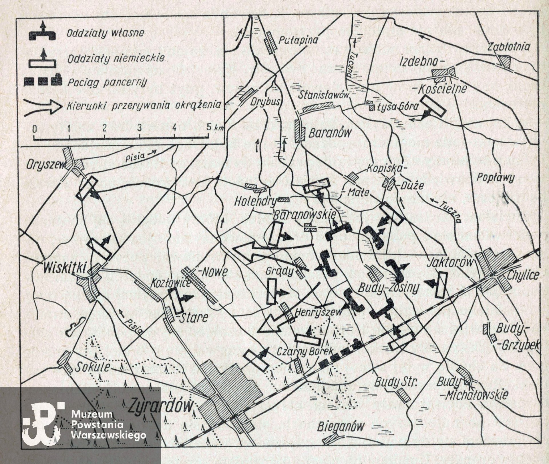 W dniu 1 VIII 1944 rano Andrzej otrzymał od dowódcy, Jerzego Glutha-Nowowiejskiego ps. Pigi (1920-1944) rozkaz przyniesienia broni dla oddziału oraz szczegółowych instrukcji dotyczących natarcia o godzinie 17:00. Do swego oddziału już nie powrócił, przez wiele lat był uznawany przez kolegów za poległego w dniu 1 VIII, jednak odcięty w drodze powrotnej Andrzej dołączył do innej grupy Powstańców działających w rejonie pomiędzy Politechniką, a szpitalem Dzieciątka Jezus, a następnie na ochotnika zgłosił się do nawiązania łączności ze Śródmieściem Północ. Pierwsze przejście okazało się udane, przy kolejnym z 3 na 4 sierpnia 1944 r. został ranny, umieszczony w szpitalu Dzieciątka Jezus przy ul. Lindleya. W dniu 15 sierpnia Niemcy rozpoczęli pierwszą ewakuację Szpitala Dzieciątka Jezus m. in. do Grodziska, Podkowy Leśnej i Milanówka. Andrzej Kozielski znalazł się wówczas w obozie przejściowym w Pruszkowie, skąd udało mu się zbiec, a następnie dołączyć do oddziałów walczących w Kampinosie. Przebywał we wsi Holendry, wziął udział w bitwie pod Jaktorowem.