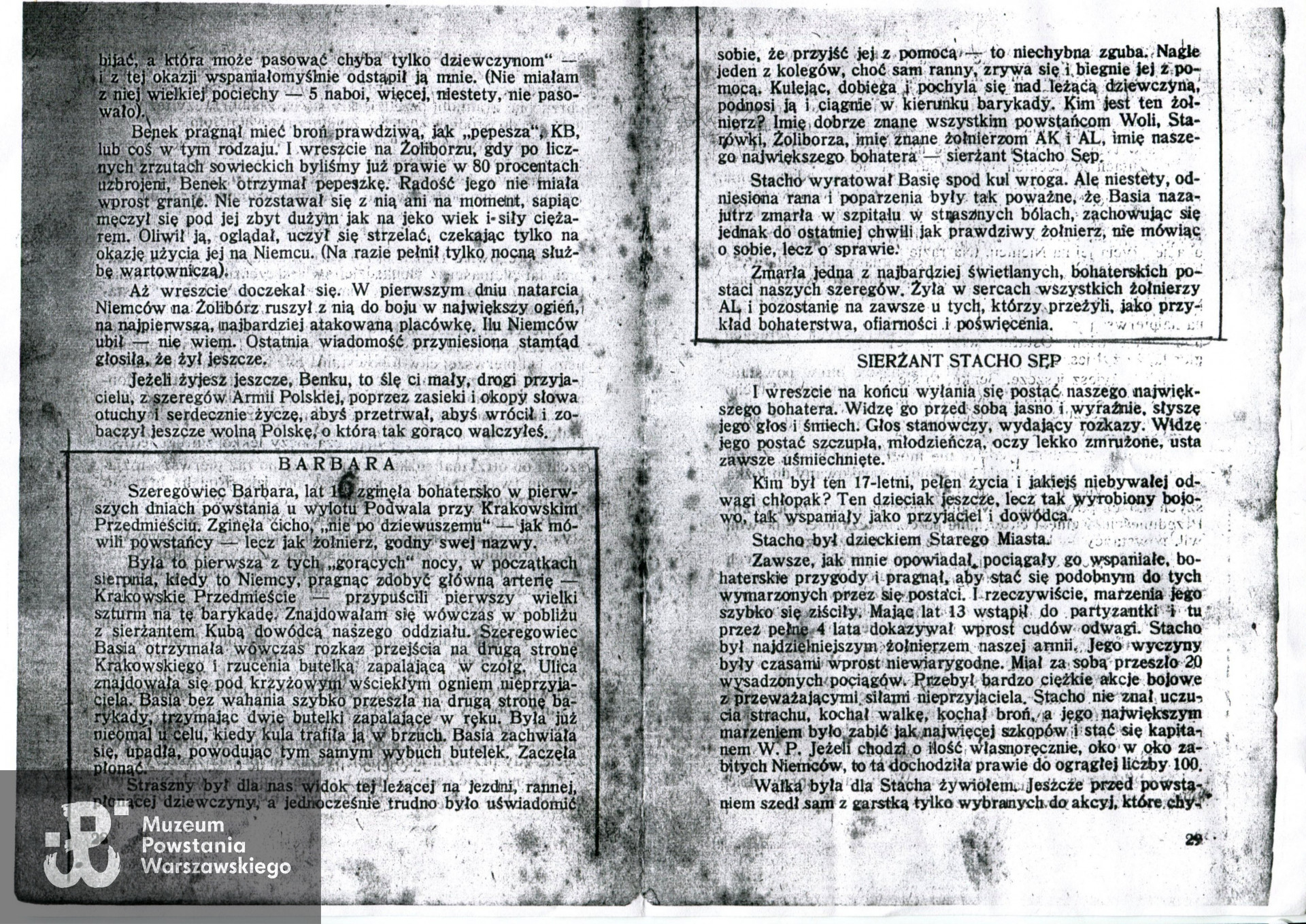 Muzeum Powstania Warszawskiego, baza uczestników PW, MPW-baza Mur Pamięci, Archiwum Państwowe m. st. Warszawy - listy ekshumowanych,  informacje z archiwum rodzinnego p. Jadwigi Dominiak. Ilustracje: fotografia portretowa - kserokopia w teczce uczestnika PW - Pokój Kombatanta MPW, zdjęcie mogiła na Cmentarzu Bródnowskim - Jarosław Maliniak/MPW