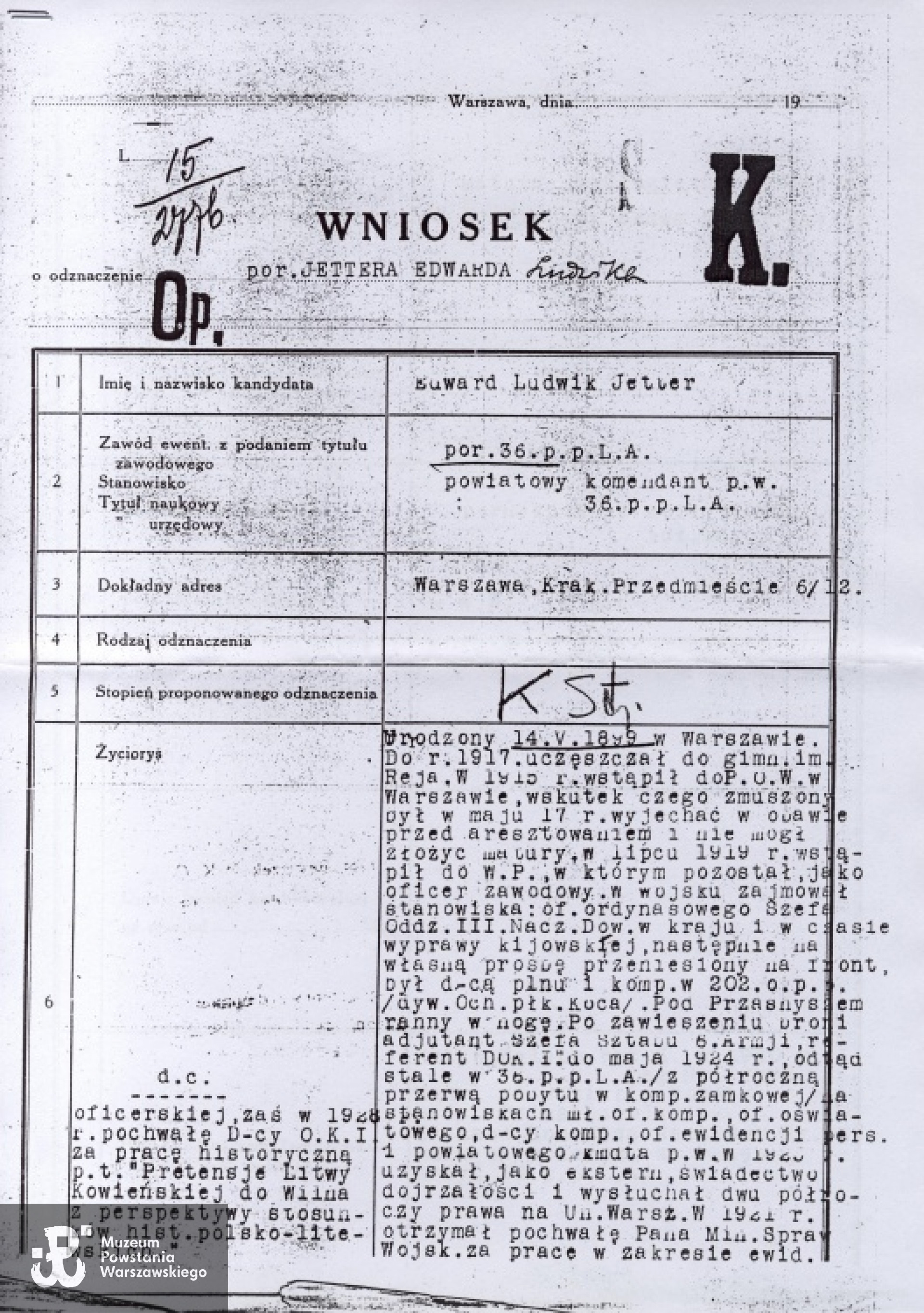 Warszawa, pochowany na Starych Powązkach (kwatera nr 131, trzeci rząd, grób nr 30), na nagrobku figuruje nazwisko Edward Ludwik Jetter vel Mierzejewski.