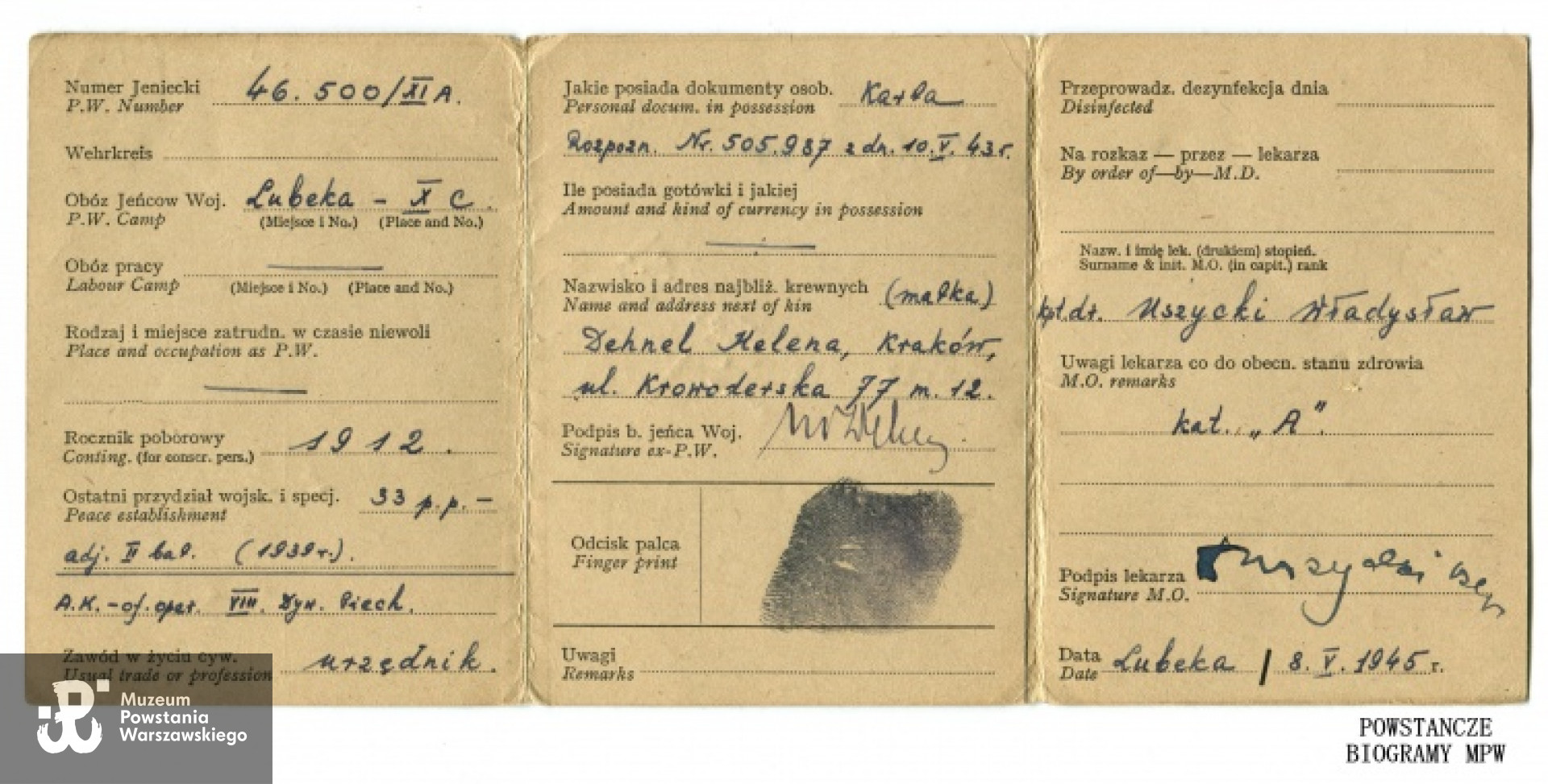 Niewola niemiecka - jeniec Stalagu X-B Sandbostel, następnie Stalag X-C Lubeka