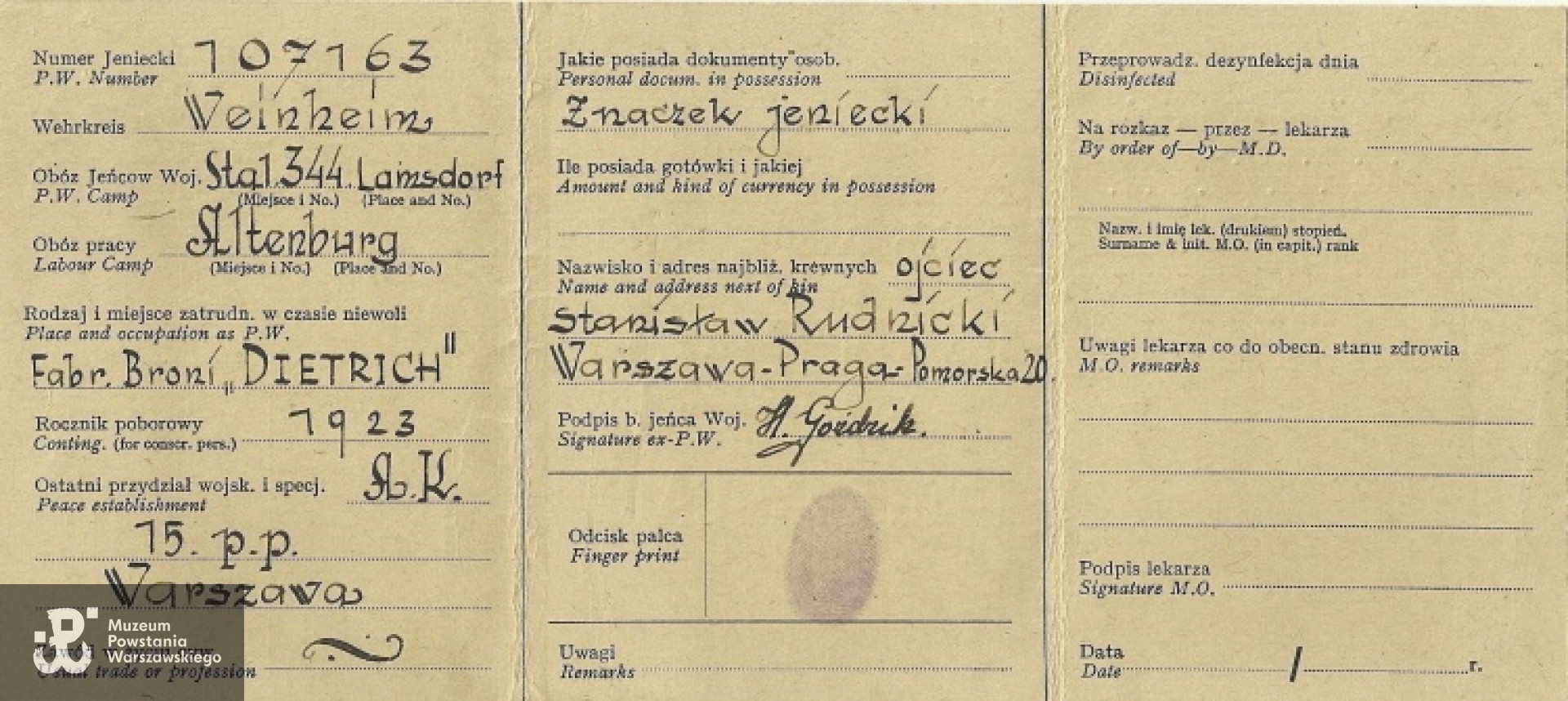 Niewola niemiecka - jeniec Stalagu 344 Lamsdorf, następnie Stalagu IV E Altenburg (kobiecy).