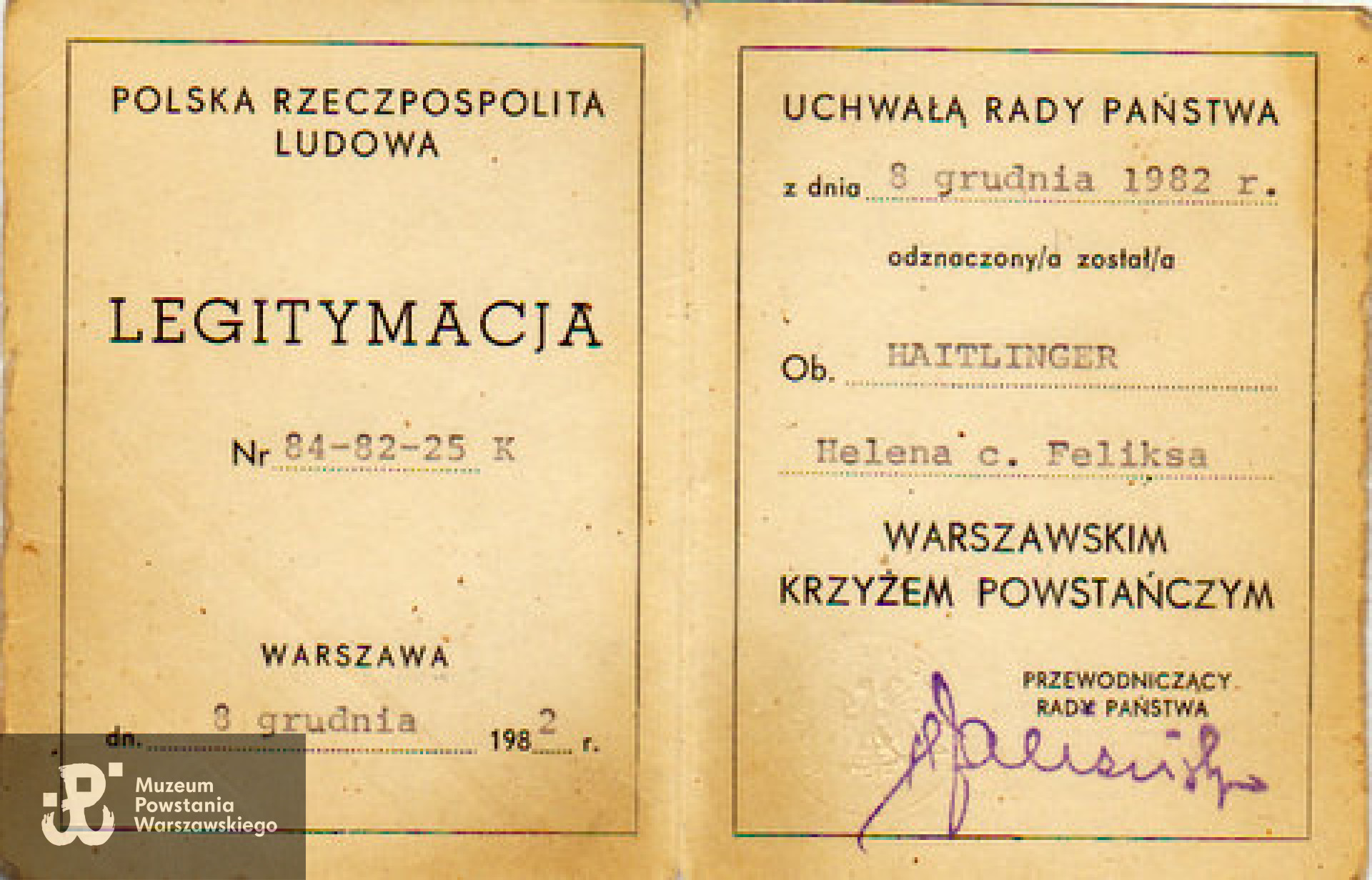 Warszawski Krzyż Powstańczy (8 12.1982).