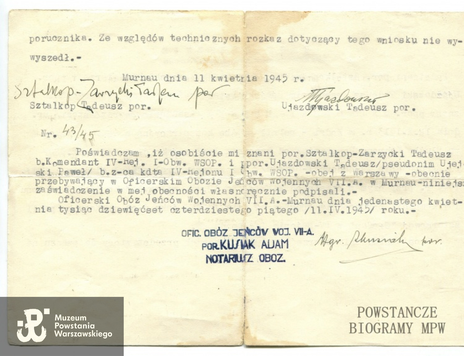 Zaświadczenie wydane przez Muzeum Jeńców Wojennych w Łambinowicach-Opolu. Fot. archiwum rodzinne