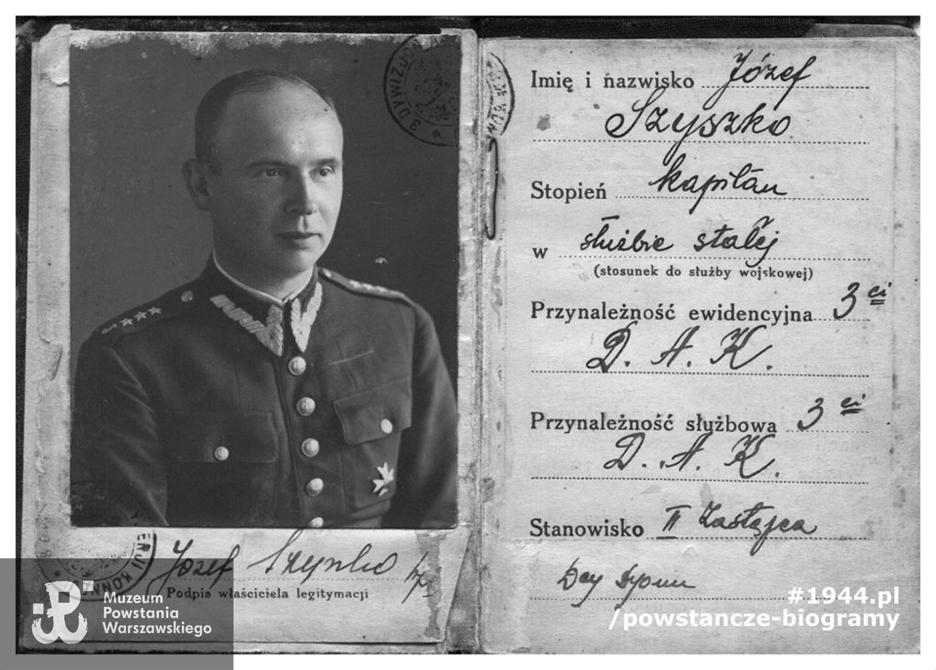 kpt. art. Józef Szyszko "Bachmat" d-ca grupy artyleryjskiej "Granat". Fot. materiały do Słownika Biograficznego Uczestników PW. Ujęcie tożsame: MPW-zbiory: MPW-IH/1081