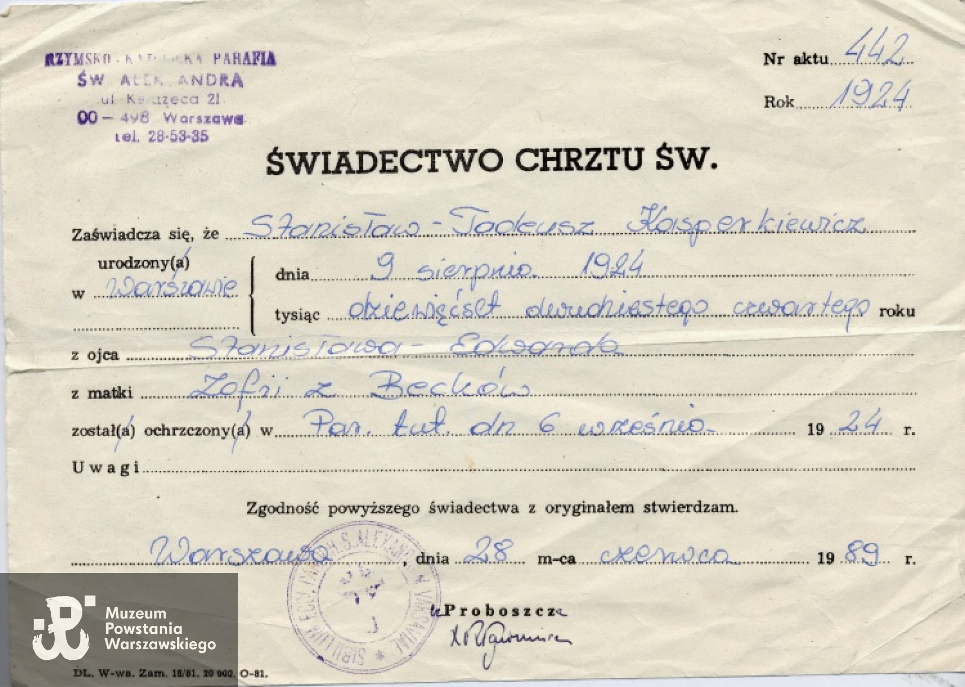 Adres przed Powstaniem Warszawskim: