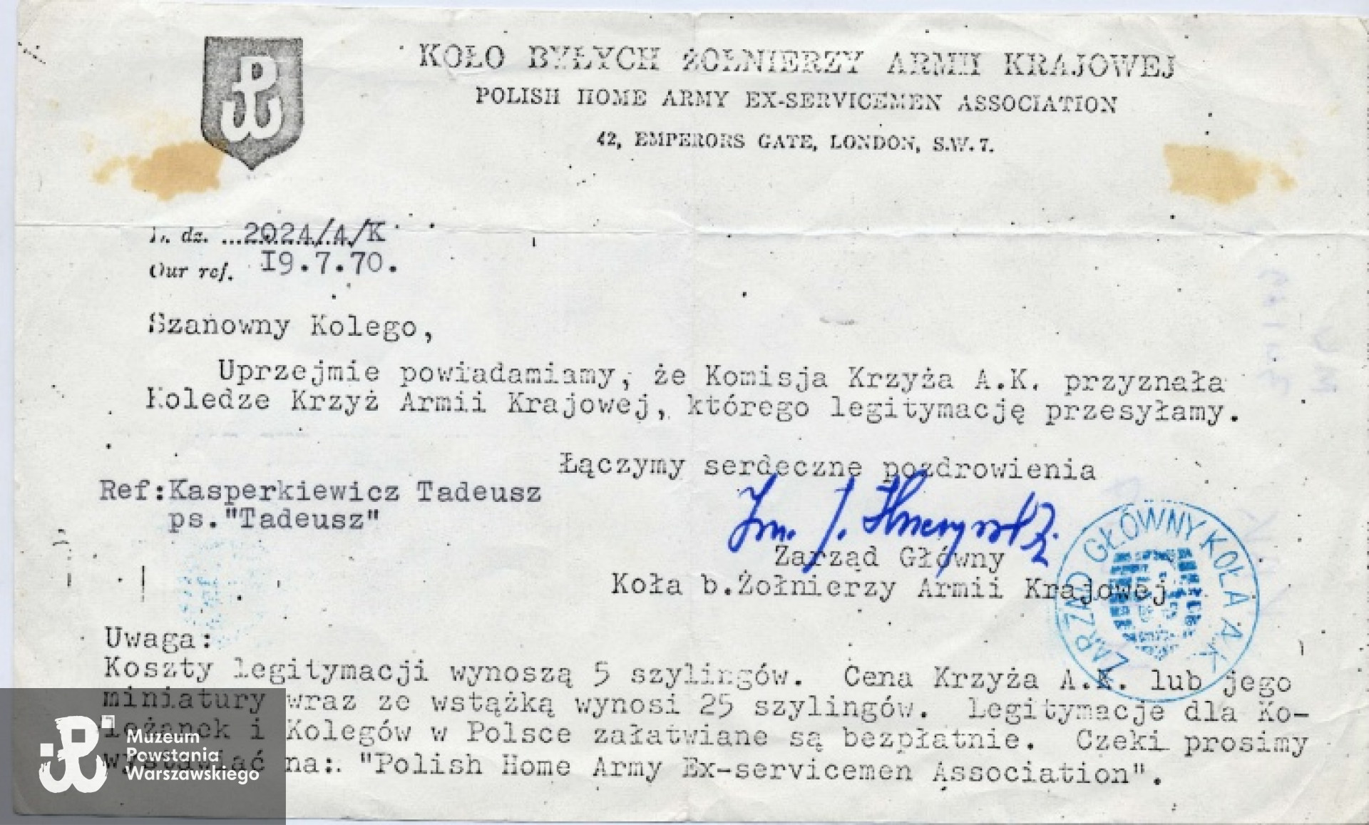 Krzyż Armii Krajowej (Londyn, 19.07.1970)
