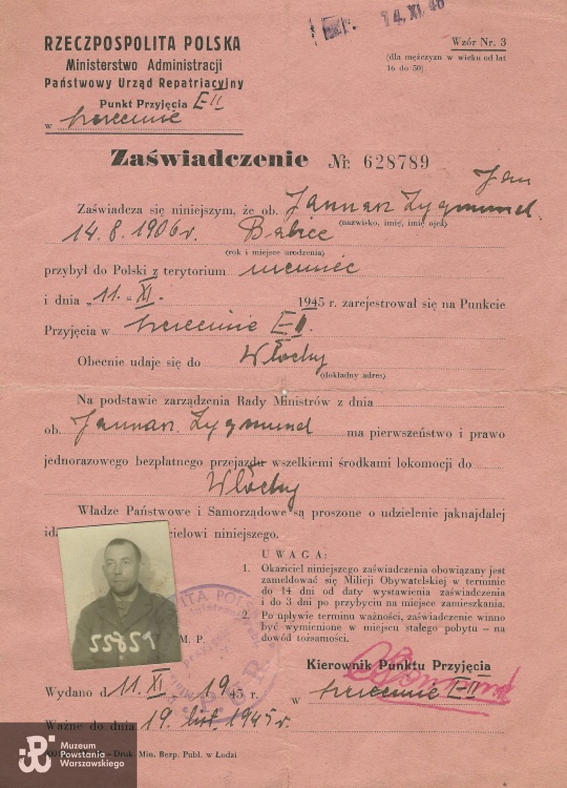 Zygmunt Jannasz po powrocie do kraju - 1945 r.